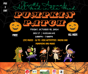 Feline Finesse is hosting their 4th Annual All Good in the Hood Pumpkin Patch. This free pumpkin patch will be on Friday, October 18th from 3-7pm along 3rd street and Hudson Ave. There will be live music, provided by DJ TC, activities for the youth, a nacho bar, pumpkins, and much more!