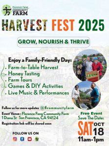Join Florence Fang Community Farm for its Annual Harvest Festival on Saturday, October 18th, 11AM-1PM, where our community comes together to celebrate the season’s abundance. This free, family-friendly outdoor event will celebrate community, agriculture, and wellness through cultural programming, collaboration with restaurants & local schools, and opportunities for connection across our diverse Bayview community.