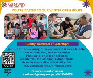 We invite all rising middle school students to join us at Gateway Middle School for our Winter Open House! Families are invited to meet our teachers, staff, and students while participating in interactive activities that showcase our vibrant learning community. This is a great opportunity to explore what makes Gateway a welcoming and engaging environment for all learners. This is open to all prospective students and their families. RSVP here
